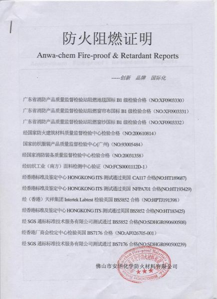 产品名称: 防火证明