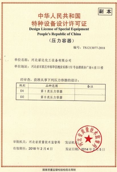 产品名称: 特种设备设计许可证 |