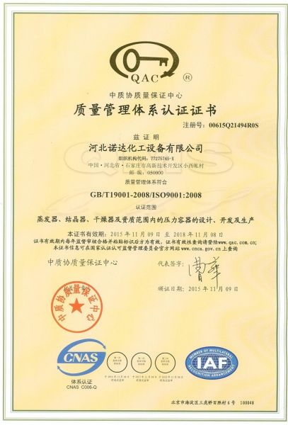 质量管理体系认证证书