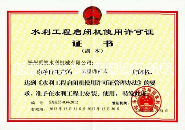 | 销售单位: 扬州禹笑水利机械有限公司 |