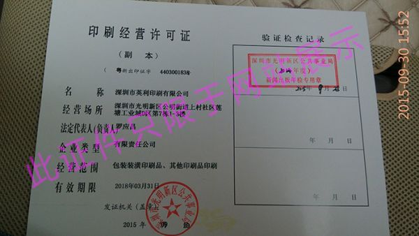 英利印刷经营许可证