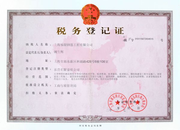 | 持证单位: 上海福银钢筋工程有限公司 |